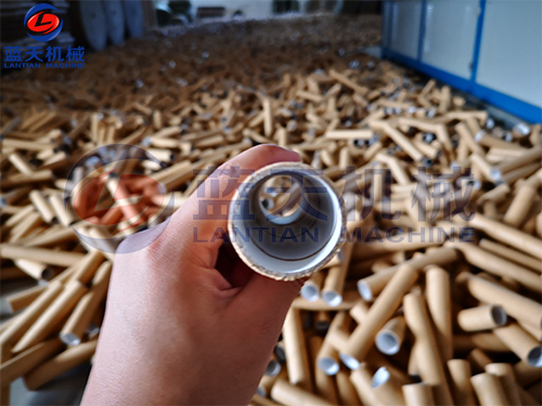 5、紙管干燥:將粗切成段的紙管段放入紙管烘干機(jī)內(nèi),打開(kāi)烘干機(jī)電源,關(guān)上烘干機(jī)門(mén),設(shè)置好烘干參數(shù)后啟動(dòng)烘干機(jī),直到紙管的含水量低于12%。